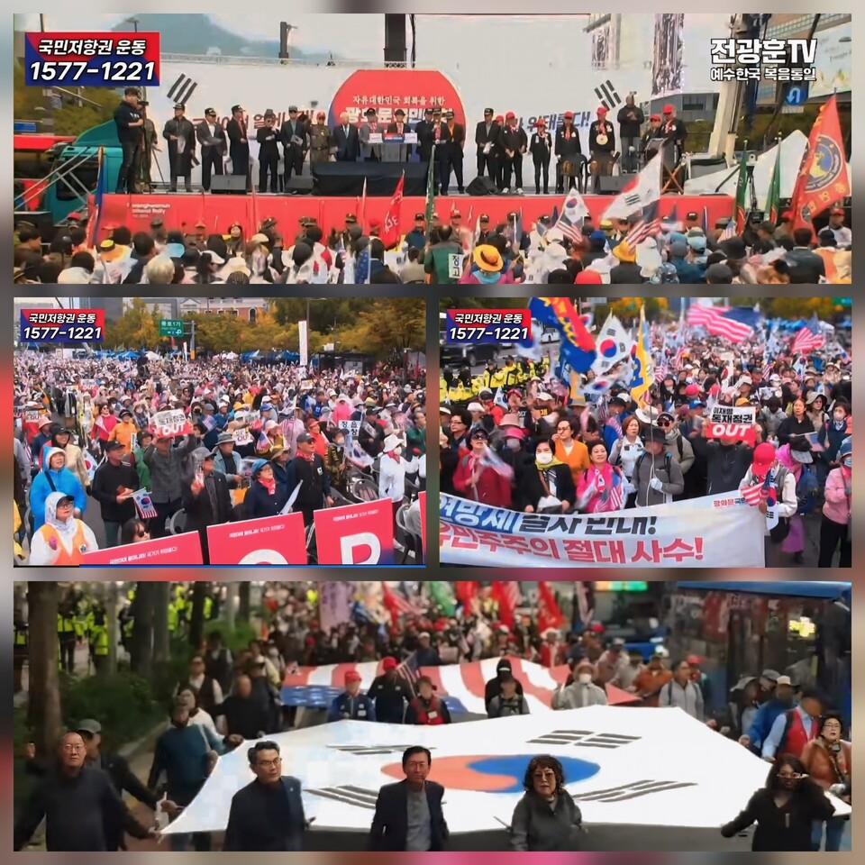 연사 발언이 끝난 16시 30분경, 참가자들은 광화문 동화면세점 앞을 출발해 종각, 을지로입구, 서울시청, 대한문을 거쳐 다시 동화면세점으로 복귀하는 행진을 진행했다. 이들은 "대한민국을 살리자"는 외침과 함께 헌법이 보장하는 국민저항권의 상징적 실현을 선언하며 대회를 마무리했다. 이날 광화문에서 울려 퍼진 국민들의 외침은 현 정부에 대한 국민적 분노와 위기의식을 여과 없이 보여주었다.