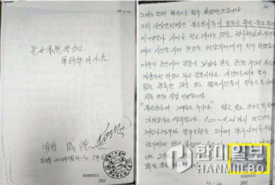 ▲ 폭도들이 탈취한 군용 지프차를 타고 추격전을 펼치며 화염병과 폭약뭉치를 던지려 했다는 증언이 담긴 장병의 자필 체험 수기. 이들 수기에는 민주화운동이라는 주장을 받아들이지 못하는 장병들의 억울한 심리가 절절히, 그리고 고스란히 담겨 있다. / 단독입수 계엄군 자필 수기 캡처